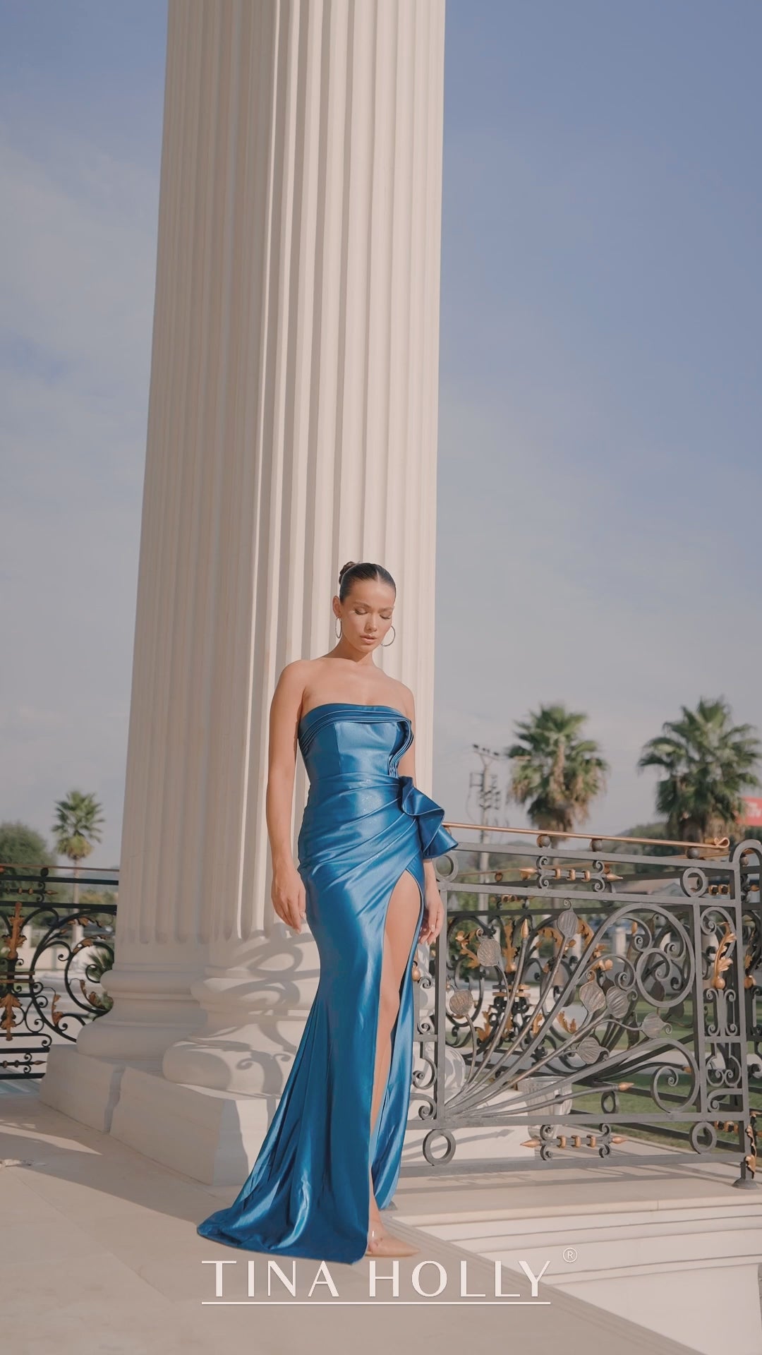 Look your best in the timeless Tina Holly Sylvie TT005 strapless dress features a structural fold detail from the bust to the waist, creating an elegant and unique design. The back showcases a mesh corset with a convenient zipper closure. A side split adds a touch of allure, while the dress flows gracefully, creating a captivating and ethereal look. The finishing touch includes a stylish side flap, adding a modern and chic element to the overall design.